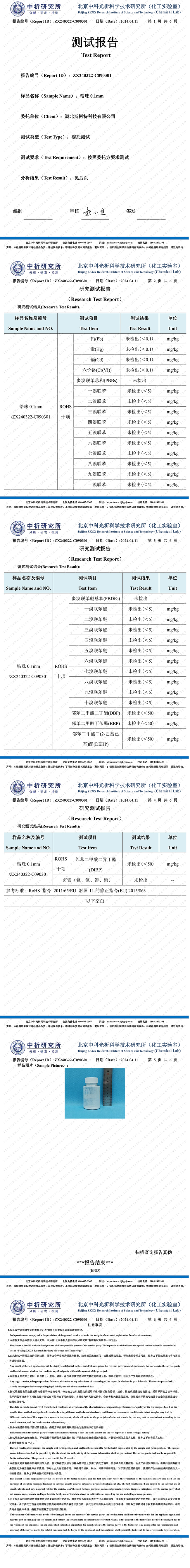 鋯珠0.1mm中科光析測試報告